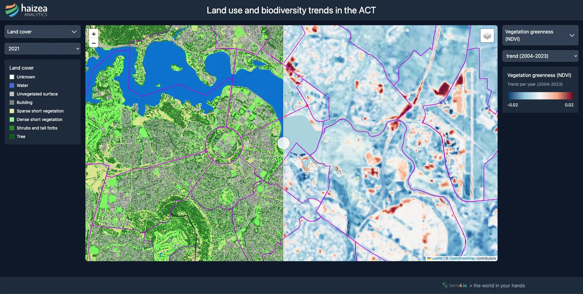Leverage the same AI-enhanced satellite analysis and interactive platforms that informed legislative change in the ACT. Contact Haizea Analytics to learn how our technology can deliver evidence-based insights for your environmental policy and planning decisions.