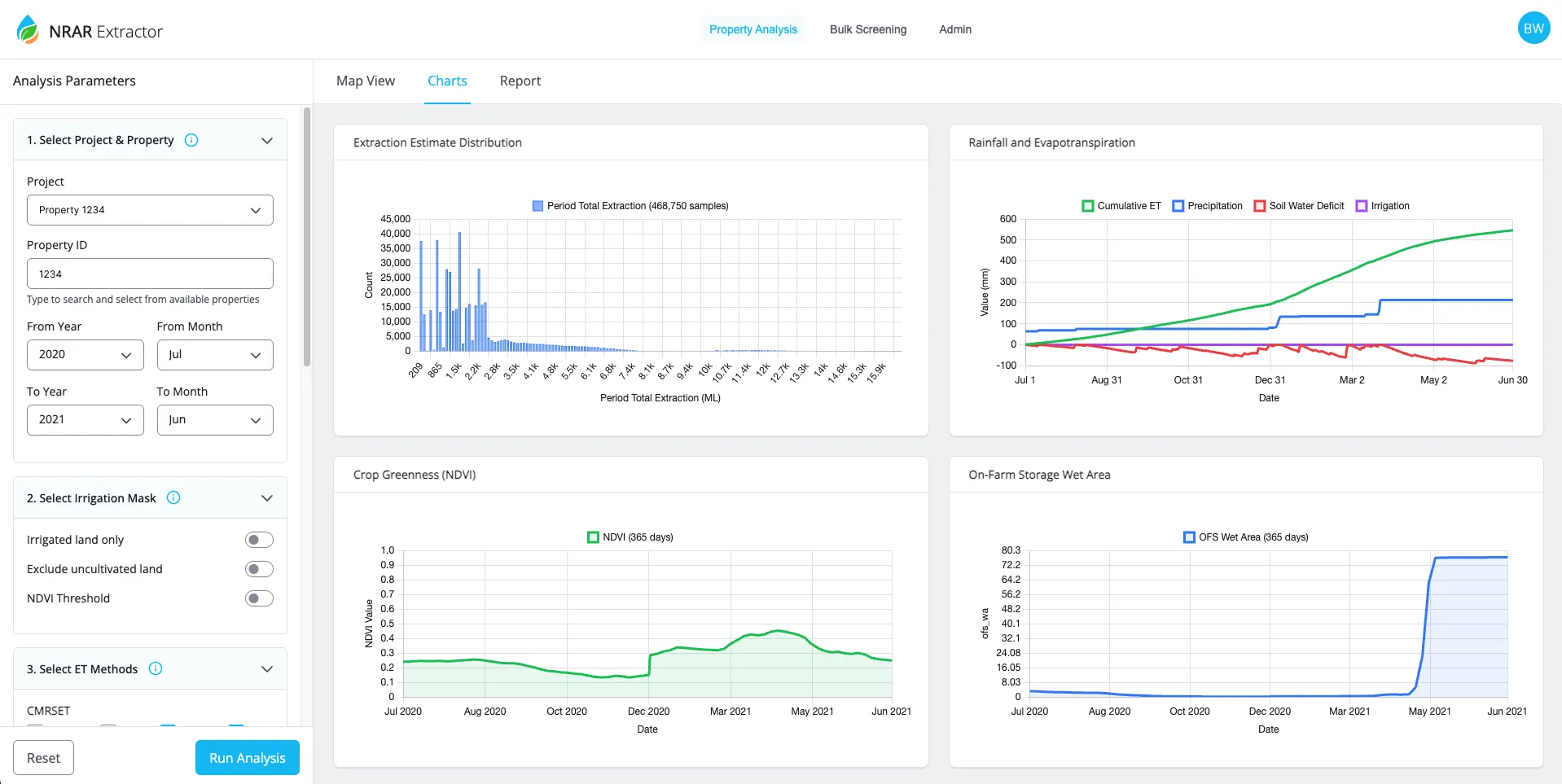 WATER STORAGE EXPLORER monitors on-farm water storage using LiDAR data across over 1,200 storage facilities.